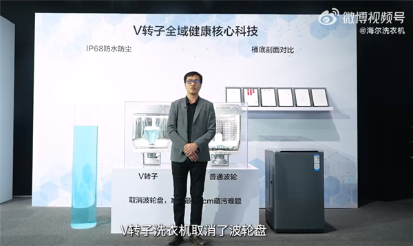 海尔波轮洗衣机企划李志强宣布,正式推出打破行业常规的海尔V转子洗衣机。
