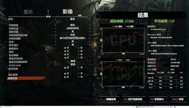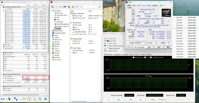 在拥有VC均热板的MSC 2.0散热系统加持下,锐龙AI Max + 395可以在长时间保持在120W的性能释放下,而双烤时更能将核心温度控制在76度以内。