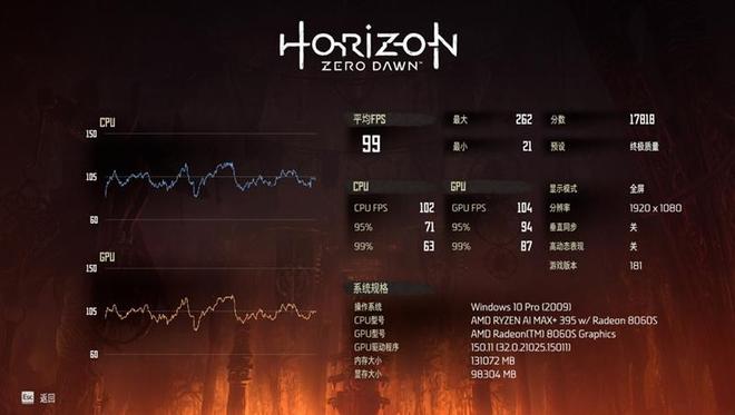 至于游戏性能,处理器内置的Radeon 8060S要比RTX 5050高了9%,比RTX 4060 Laptop强了10%。