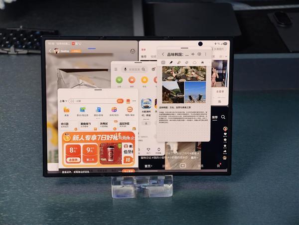 多任务最多支持三个窗口+浮窗,充分发挥出10英寸大屏的优势,可以一边浏览资料,一边撰写文档,另外一边和客户沟通。应用还可以像电脑窗口那样随意拖动、吸附、半屏占位,操作丝滑流畅,跟电脑无异。