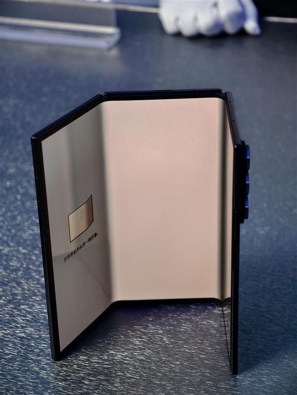 而且也因为这个双向内折的结构,它可以把两侧稍微折一点,立在桌面上形成一个半环绕的大屏,观影沉浸感很独特,属于三折独有的形态优势。