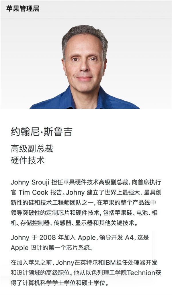 据了解,自2008年加入苹果以来,斯鲁吉主导了从iPhone 4的A4芯片到最新A19 Pro、M4系列的全代研发,堪称"苹果自研芯片之父"。