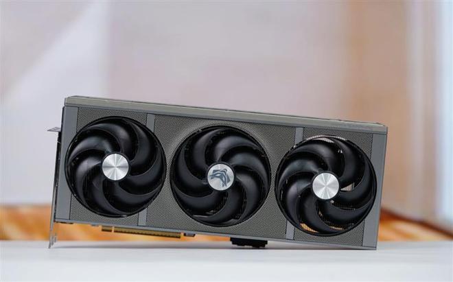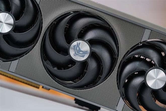 蓝宝石NITRO+氮动RX 9070 XT显卡采用了三风扇正反转设计,散热器外壳使用金属灰色和钛金色的金属材质,整体做工十分扎实。