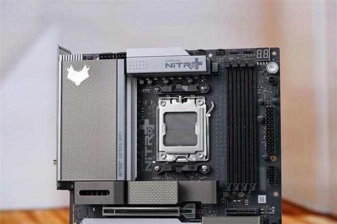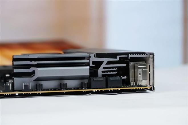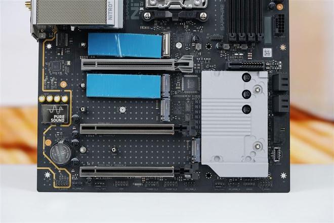蓝宝石氮动Nitro+ X870EA PhantomLink主板的供电部分和PCIe 5.0 SSD散热片都十分高大,如果计划安装风冷散热器,就需要注意一下尺寸问题。