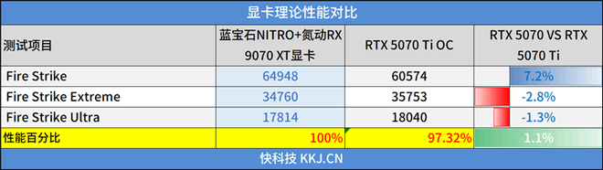可以看到在关键的DX12游戏测试中,2K和4K两种负载强度下,蓝宝石NITRO+氮动RX 9070 XT显卡的性能表现都领先于NVIDIA RTX 5070 Ti超频版,整体优势约有6%左右,而DX11测试项目中互有优劣,差距并不明显。
