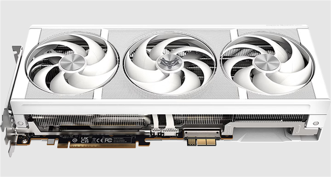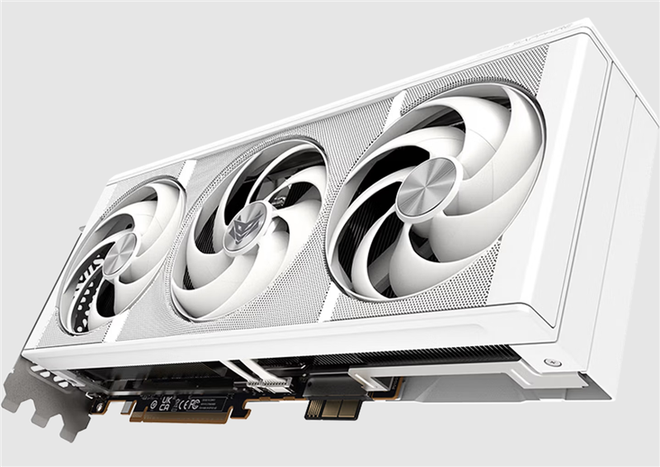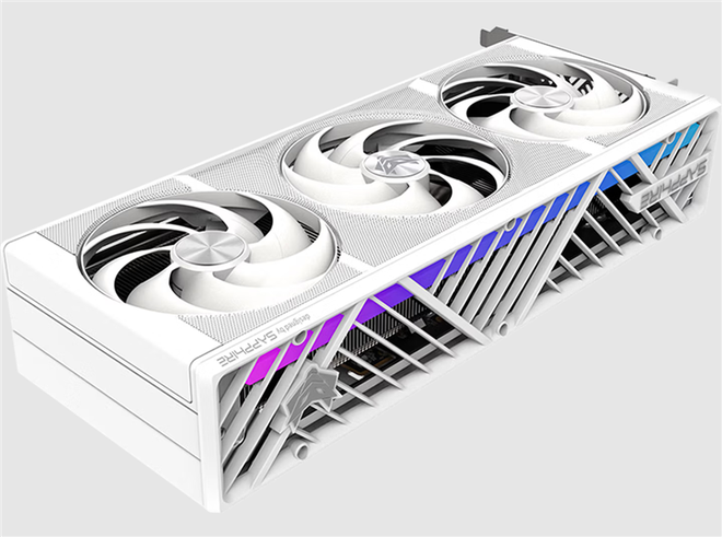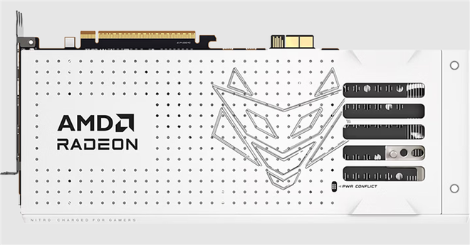 蓝宝石NITRO+氮动RX 9070 XT显卡还提供了纯白色的版本:蓝宝石NITRO+氮动极光RX 9070 XT背插显卡,同样也很好看。
