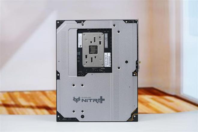 蓝宝石氮动Nitro+ X870EA PhantomLink主板背部也完整覆盖有银色的散热装甲。