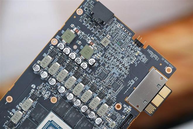 蓝宝石NITRO+氮动RX 9070 XT显卡底部的PCIe金手指后方,还有一个小型的金手指,也就是蓝宝石NITRO+氮动RX 9070 XT显卡背插式设计的关键:PHANTOM LINK。