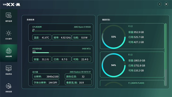 TriXX-M软件提供了简单的系统诊断功能,用户可以很直观的看到当前系统的状态。