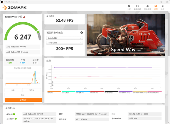 在3DMark测试综合性能的Speed Way测试中,总成绩为6247,其中显卡测试成绩为62.48FPS。