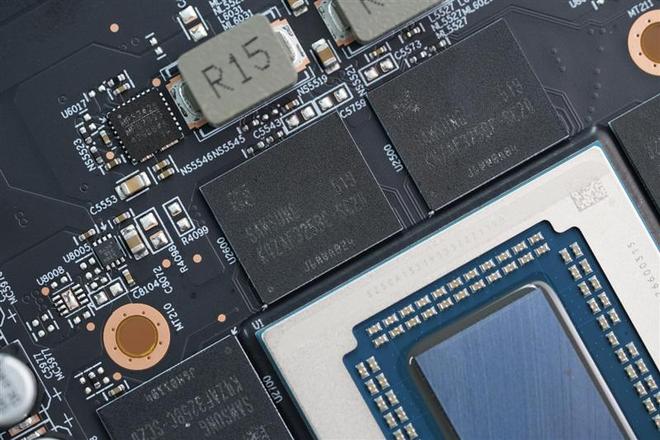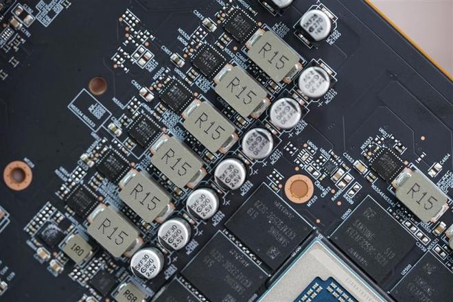 蓝宝石NITRO+氮动RX 9070 XT显卡的16相供电特写。