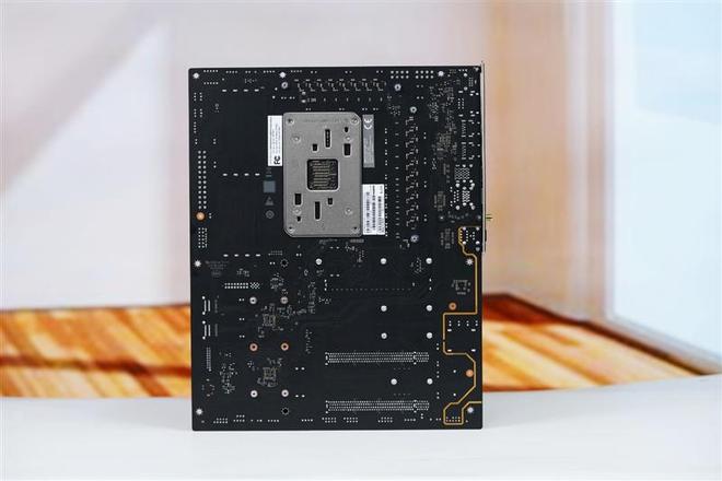 拆除散热装甲后的蓝宝石氮动Nitro+ X870EA PhantomLink主板背部全貌。