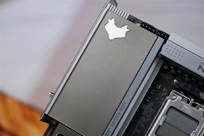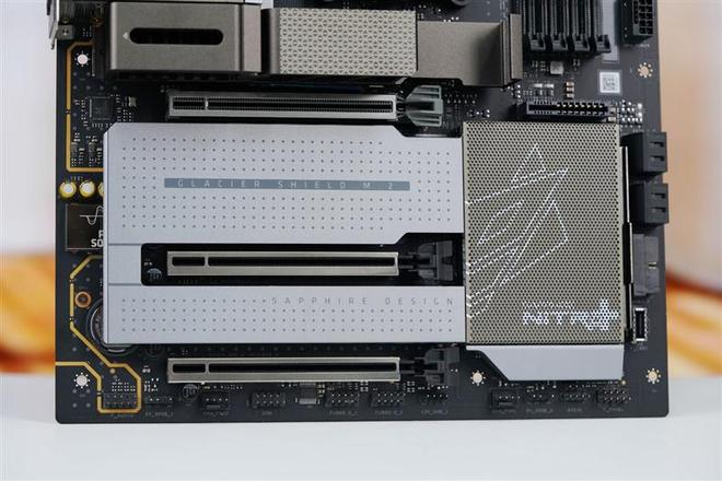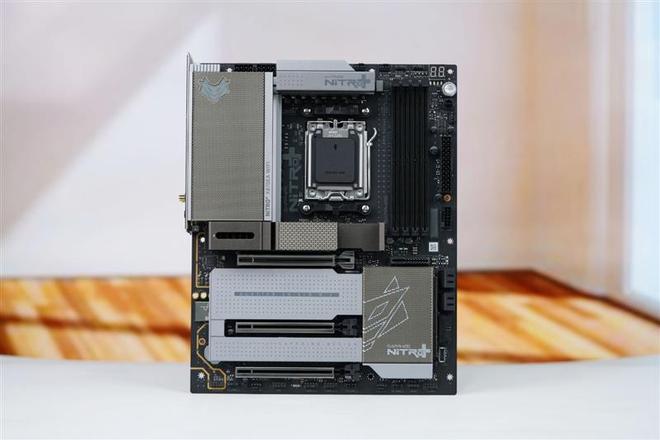 蓝宝石氮动Nitro+ X870EA PhantomLink主板和显卡采用了相同的设计风格,金属灰框架配合钛金色网孔面板,同样扎实的工业风格。