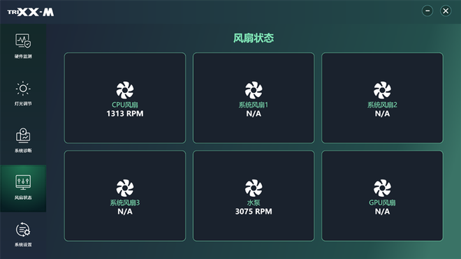 TriXX-M软件中也可以对风扇工作情况进行实时监控