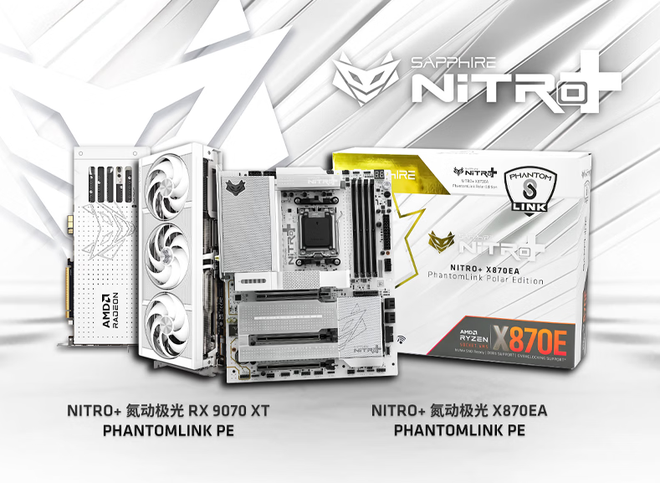最后,蓝宝石NITRO+氮动RX 9070 XT显卡和蓝宝石NITRO+ X870EA PhantomLink Edition主板这一套顶级双A旗舰背插方案,都有白色的极光版可供用户选择,用户如果像组建一套纯白背插海景房,那蓝宝石氮动极光套装就是非常合适的选择。