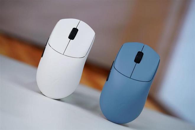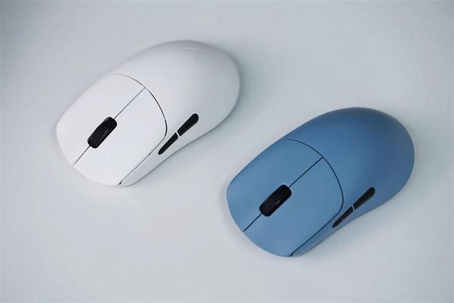 同样的,两款鼠标的大小和造型完全一致。均为右手特化的对称式布局,主要适配手型小于19cm的中小手用户,鼠标上方仅有传统的左右键以及滚轮,十分简洁。