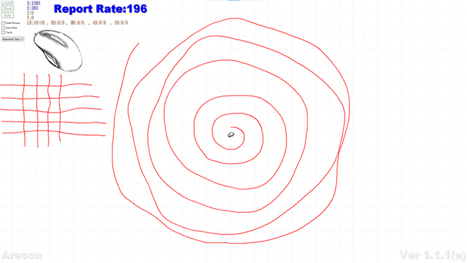 在开启后的画圆以及井字测试表现,在高DPI的情况下可以有效地降低手部抖动造成的鼠标倾斜,但在游戏时可能会影响操作手感,建议按需开启。