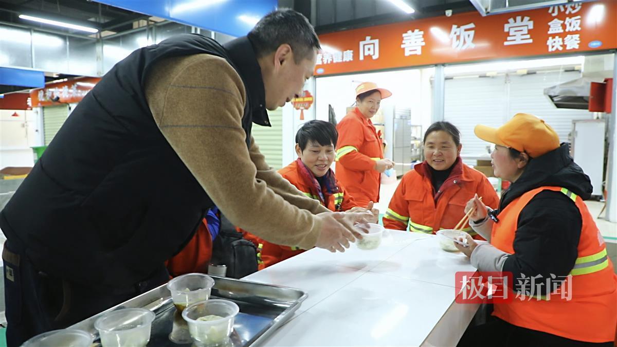 “我们每天都在道路上忙碌,很少有机会聚在一起。前几天我还想着,如果大家能一起包一次饺子就好了。”环卫工人张师傅说,这一简单而纯粹的愿望,在“向善饭堂”的帮助下得以实现,为这个冬日增添了一抹温暖。