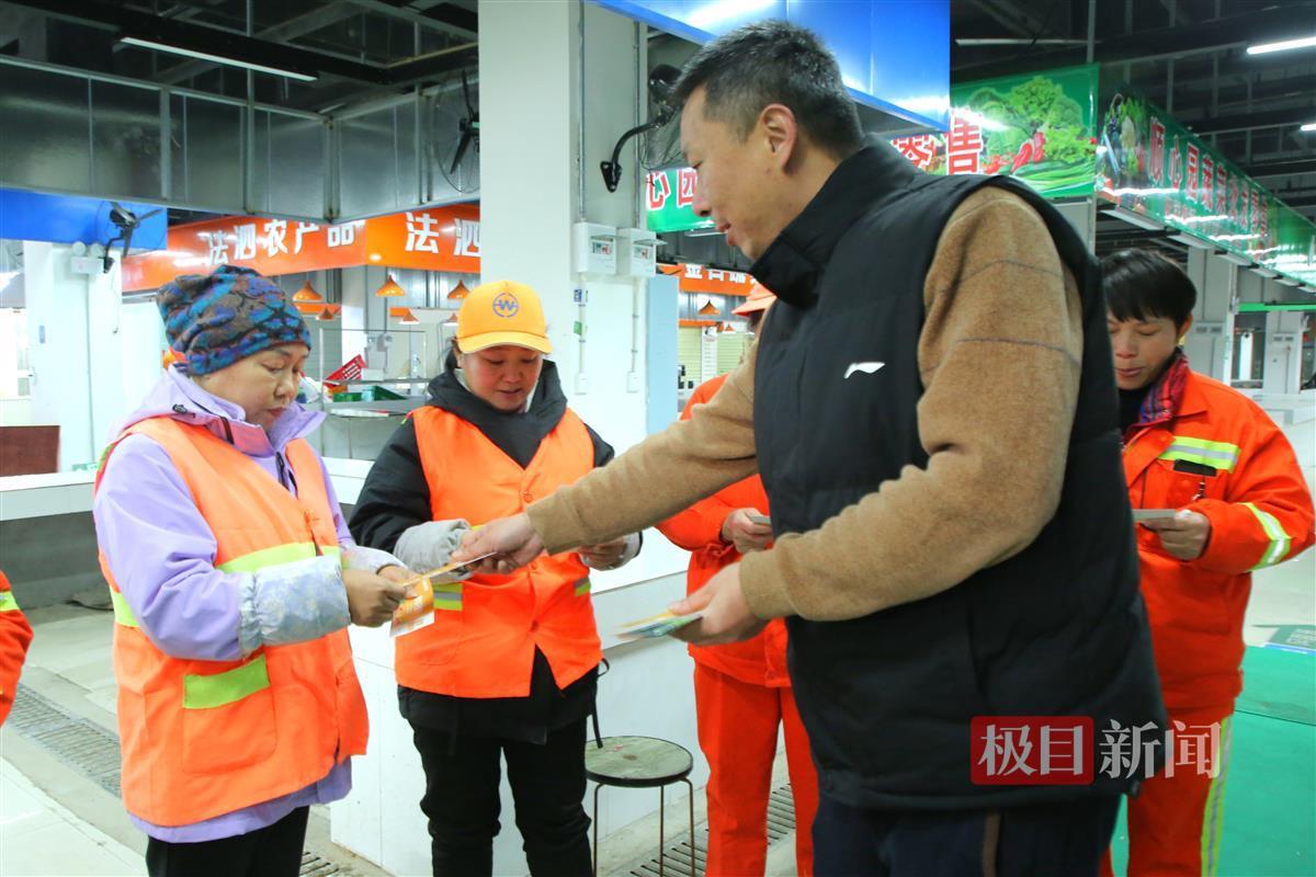 原来,一二生鲜市场的几位合伙人,前几天在楚天都市报极目新闻里看到武汉城管公布的第一批环卫工微心愿后,得知不少环卫工人在冬天想吃上一口热乎饭菜的心愿后,就与江夏区城管执法局取得了联系,决定为环卫工人点亮这个心愿。