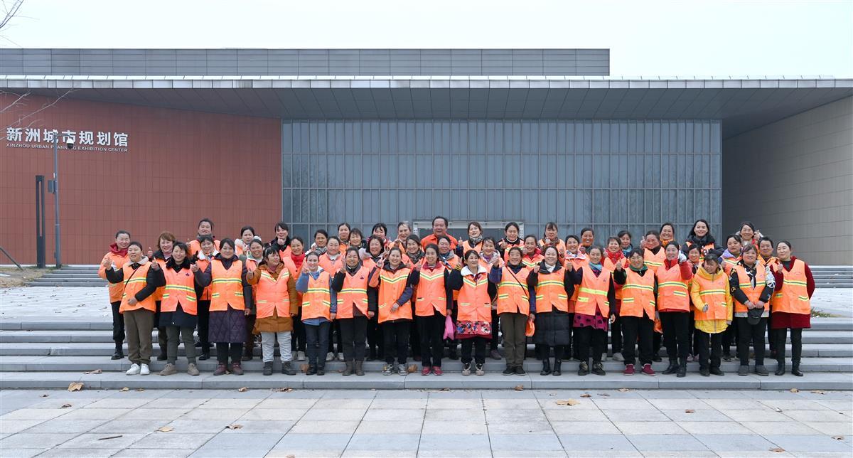 问津大道规划馆前,邾城街环卫三队全体70余名环卫工人在这里拍下全家福。这也是他们见证新洲区邾城街市容环境焕然一新的地方。这里,曾是一片荒芜之地,建筑垃圾与生活垃圾堆积如山,给城市的整洁与美观带来了极大的挑战。