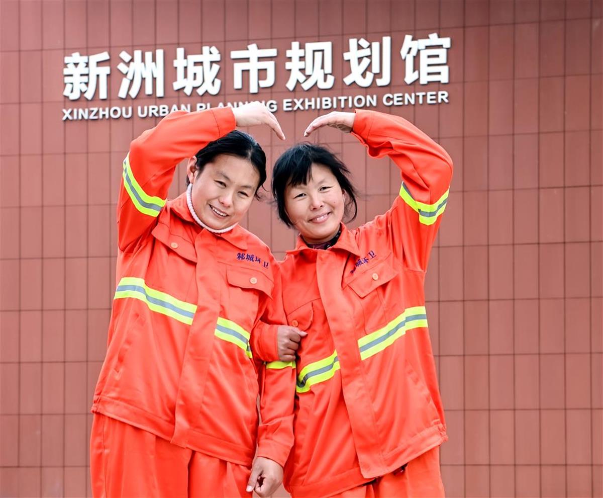 “当时谁都不愿意去负责这块区域,我想这样可不行,这一片是交通要道,我就主动带着邾城环卫三队的队友们来这里负责,我妹妹喻丹也主动加入了任务繁重的第三组责任区,我们两姊妹互相帮助,工作比着干,大家亲切地称我们为环卫姊妹花。”邾城环卫三队的清扫组长喻双凤指着面前的问津大道规划馆说道。
