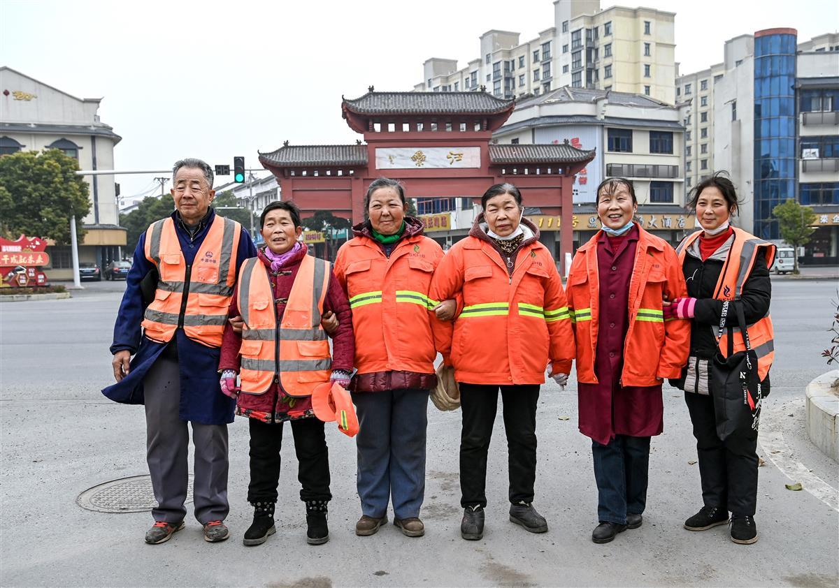 “我们是六朵金花!”在汪集街的全家福拍摄现场,传来一阵爽朗的笑声。原来,汪集街孔埠片区的5名保洁阿姨和1名保洁大叔组成了一个特殊的环卫群组,这6人在孔埠集镇做环卫工作都在十年以上,他们共同负责孔埠集镇环卫清扫保洁工作。