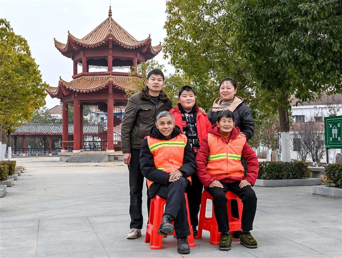 12月27日上午10时左右,在徐古广场,摄影家协会会员陈耀清和汪专,为环卫工人梅兵飞一家拍“全家福”。梅师傅与老伴都是环卫工人,夫妻俩每天将负责的路段,打扫得干干净净。他们的儿媳张丽红说,公公婆婆对清扫保洁认真负责,即使是在大年初一,也不休息,仍坚守岗位。为此,过年期间,她与丈夫一起,经常与老两口一起打扫卫生。