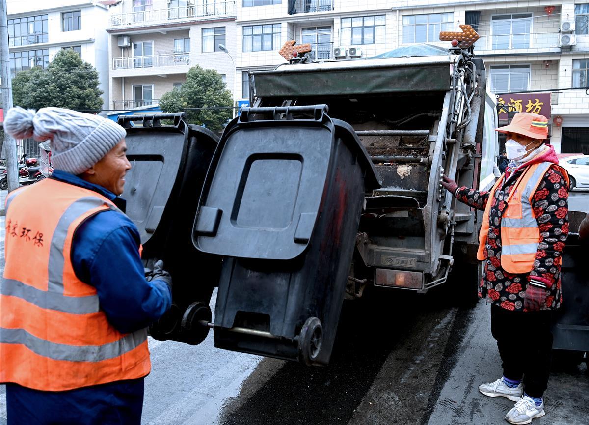 妻子胡菊姣看到胡佑元干环卫虽辛苦,却乐在其中,也主动要求加入环卫工作的行列。去年,胡菊姣被聘为垃圾收运挂桶工,夫妻二人从此并肩战斗在一起,工作中你帮我,我助你,成为汪集项目部有名的“夫妻档”,他们的事迹在汪集家喻户晓。儿子与儿媳十分自豪,在拍全家福时,他们为父母点赞,摄影师拍下了这有爱的瞬间。