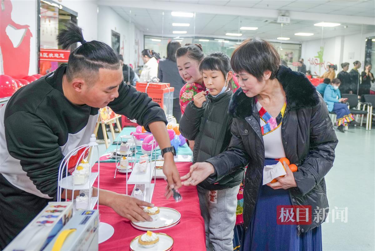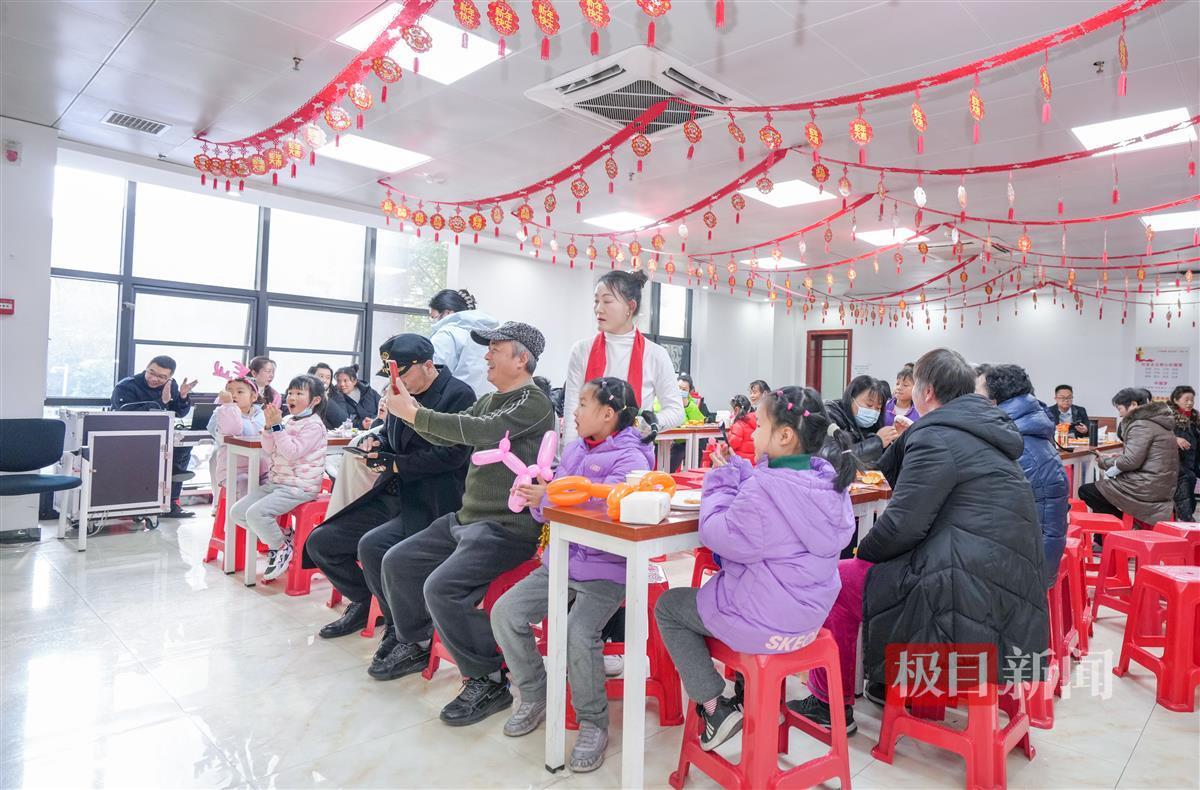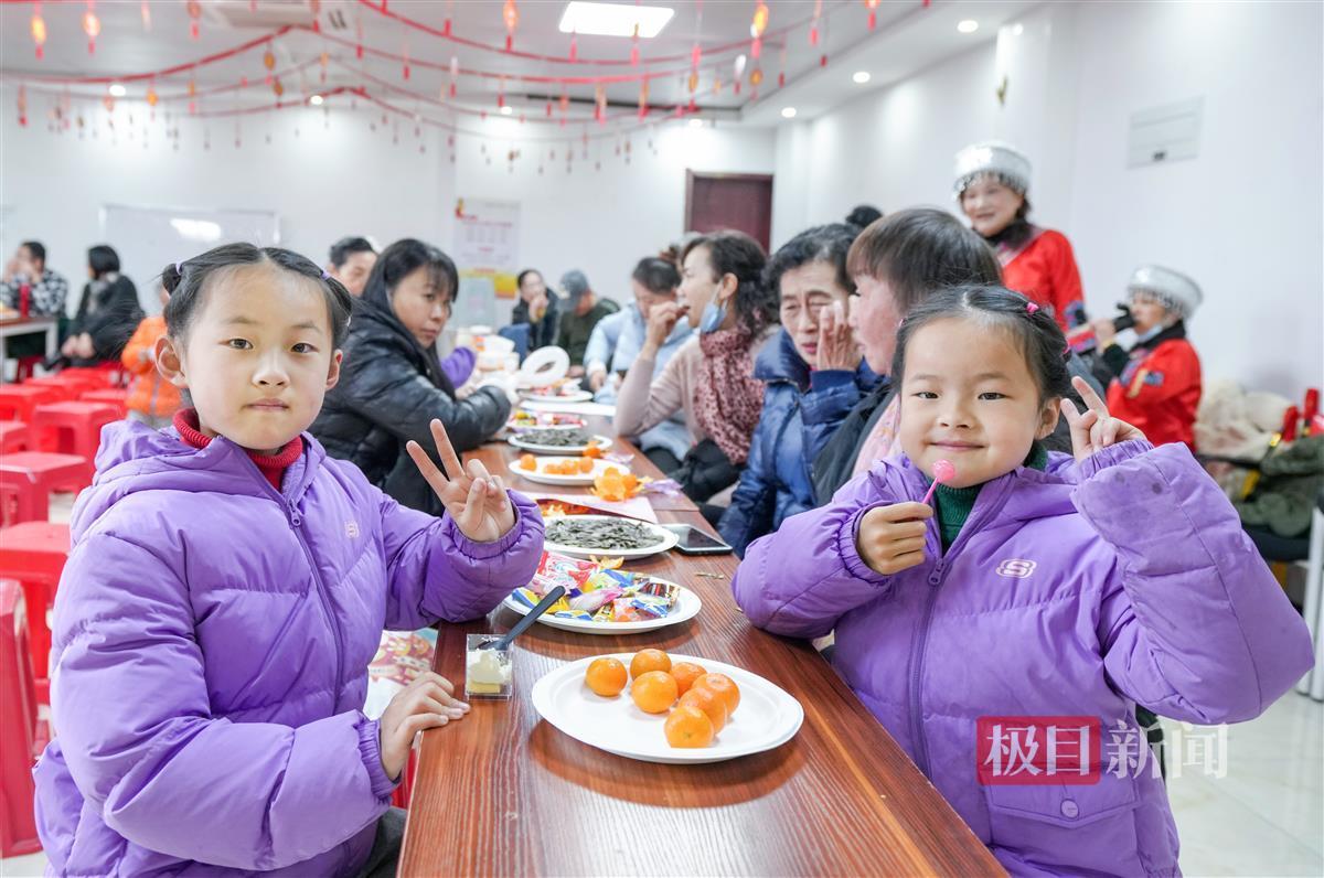 12月29日下午2时许,极目新闻记者走进楚天都市雅园社区二楼活动中心,此处张灯结彩,热闹非凡。在活动中心的长桌上,瓜子、橘子、糖果等零食依次摆放,居民们开心地话家常。