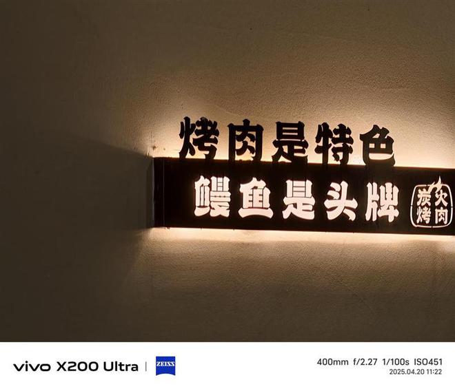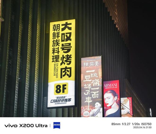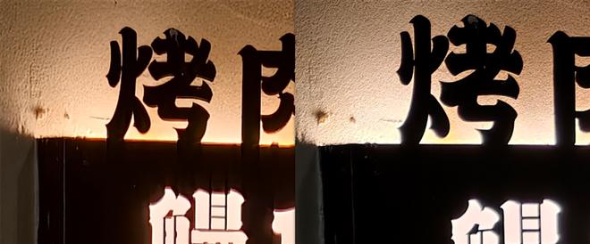 在第二组样张中,使用3.7倍原生焦段拍摄暗环境下的灯牌时,画面色彩饱和度较高,整体色调偏暖。