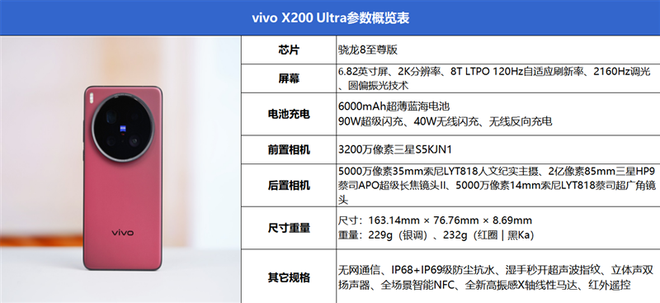 可以说,vivo X200 Ultra就是追求极致影像体验的最优选之一,通过独一无二的影像系统成为当下手机摄影的天花板,在性能、续航等各方面都达到顶级水准,无愧于"全能V单"之称。