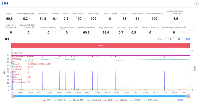原神手游,在开启最高画质+60帧模式下,须弥城跑图15分钟,平均帧率稳定在了60.9FPS。