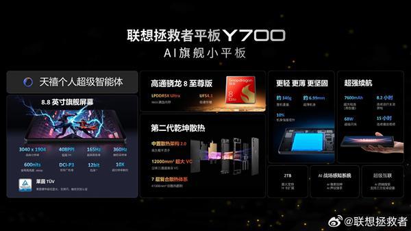 唯一骁龙8至尊版小钢炮!联想拯救者平板Y700四代上架:国补价2804元起