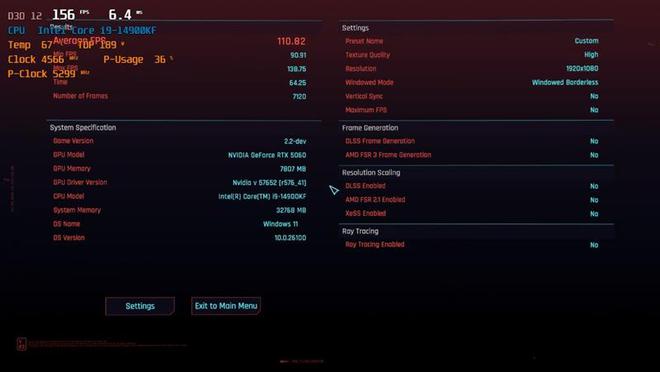 在《赛博朋克:2077》中,我们使用最高画质并关闭光追,关闭分辨率超采样,在2K分辨率下帧数为68.9,1080P分辨率下帧数为110.82。