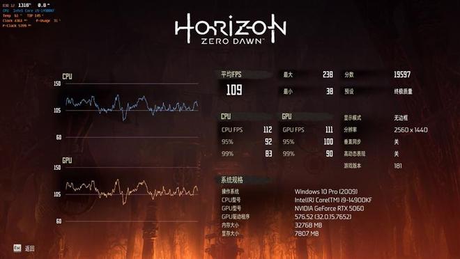 在《地平线:零之起源》中,使用终极质量预设,关闭超分辨率采样,在2K分辨率下帧数为109,1080P分辨率下帧数为145。