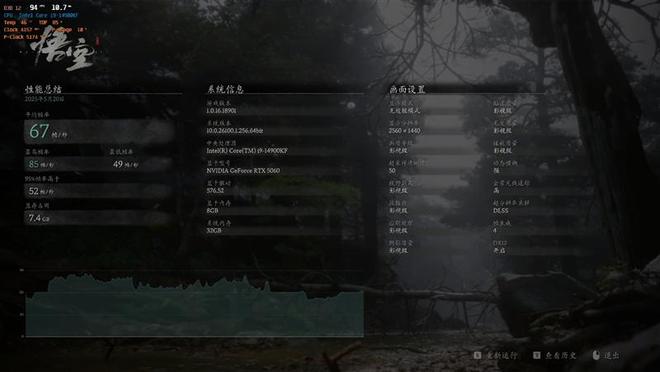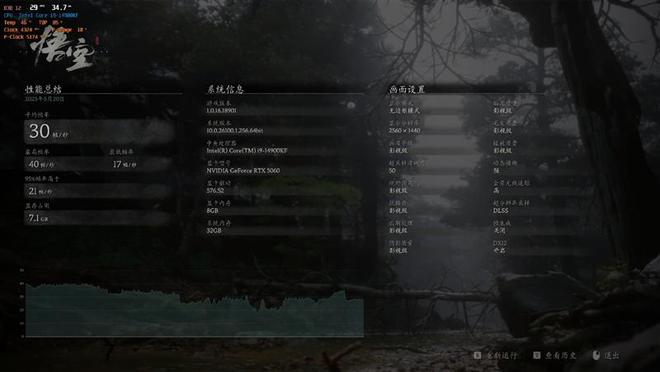 在《黑神话·悟空》中,我们将分辨率设置为2K,使用影视级画质预设,DLSS采样精度设置为50,启用DLSS 4时游戏帧数可以从30提升至64。
