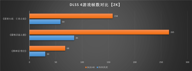 但在《霍格沃兹之遗》和《星球大战:亡命之徒》中,DLSS 4的帧数提升效果还是非常显著的,我们甚至额外测试了这两个游戏在4K下的表现,同样轻松超过100帧,运行极为流畅。