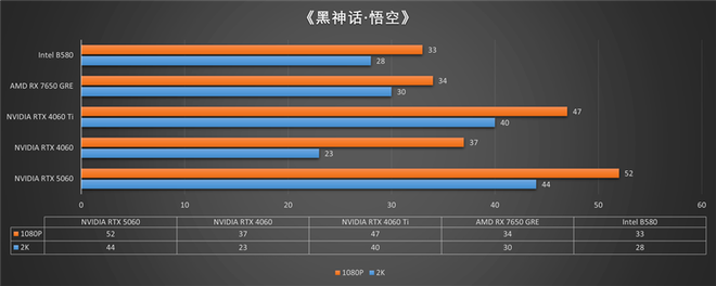 DLSS 4当然是RTX 5060最大的卖点,但也不是所有的游戏都支持DLSS 4,我们也测试了在不使用DLSS 4的情况下,RTX 5060显卡的游戏性能,也方便与同级别显卡进行性能对比,让玩家更清了解RTX 5060的性能。