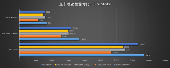 NVIDIA新显卡的发布顺序是从高到低,收官之作是定位最低的RTX 5060,相比更早发布的Intel B580就拥有了后发优势,RTX 5060的性能非常精准敌比B580强一点点,虽然B580拥有更大的显存。
