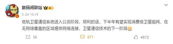 据博主数码闲聊站爆料,低轨卫星通信系统进入公测阶段,顺利的话,下半年有望实现消费级卫星组网。