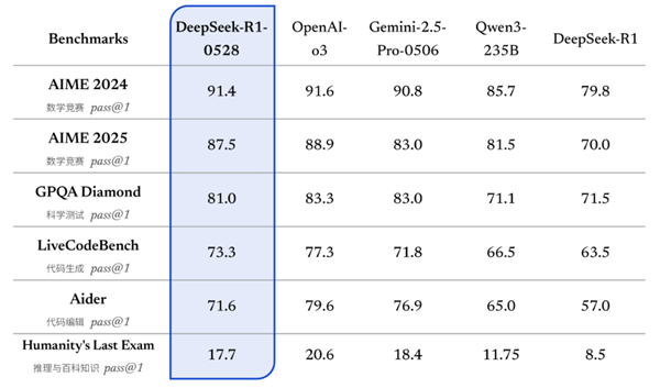 DeepSeek官宣R1 0528版本更新:表现接近o3、Gemini-2.5-Pro