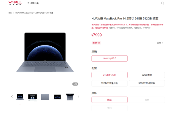 全球首款鸿蒙PC!华为MateBook Pro鸿蒙笔记本开售:7999元起