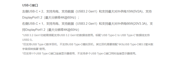 接口方面,左侧提供2个USB-C 3.2 Gen 1接口(支持DP 1.2,最大输出分辨率4K 60Hz,支持最大对外供电10W);右侧提供1个USB-C 3.2 Gen 1接口(支持DP 1.2,最大输出分辨率4K 60Hz,支持最大对外供电66W)。