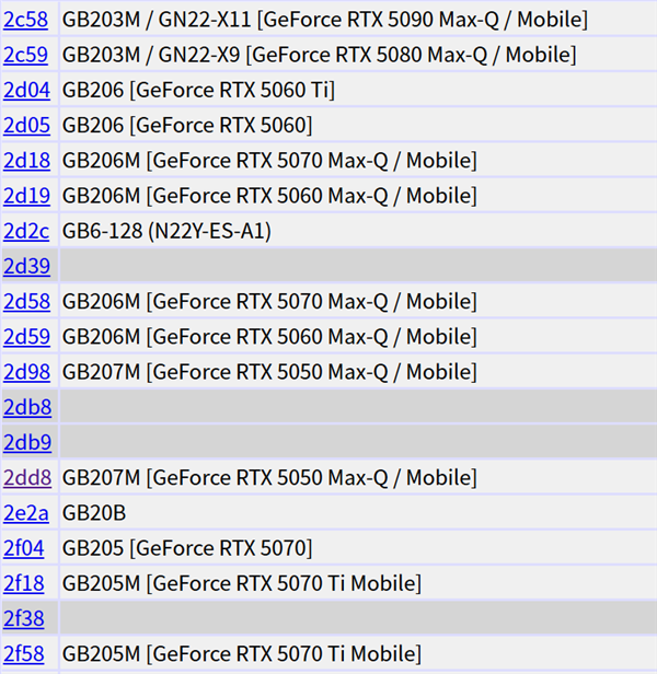 此次出现在PCI ID列表中的GB207 GPU,其ID为2d98或2dd8,另外2db8和2db9也可能是其他变种的ID。