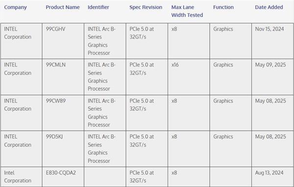 6月13日消息,近日,一款代号为"99CMLN"的英特尔Battlemage系列显卡被添加至PCI-SIG数据库中。