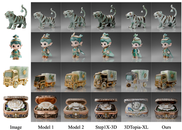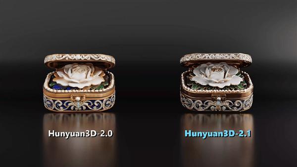 相较于混元3D 2.0模型,新模型既优化了几何生成的质量,也开放了PBR(基于物理的渲染)材质生成大模型,进一步提升3D资产的质感和光影表现,告别"塑料感"。
