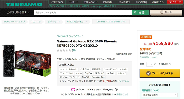 不过市场上仍有部分显卡的价格高于官方建议零售价,例如在亚马逊上,部分RTX 5080显卡的售价仍然超过200,000日元。