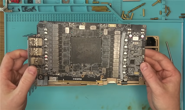 这款显卡的核心部件,GB202芯片和GDDR7显存芯片都不见了踪影,据估算,这些核心部件的成本占据了整个显卡总成本的80%,没有这些部件,显卡自然无法工作,也毫无价值。