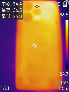游戏过后,机身背面最高温度仅有36.5摄氏度。