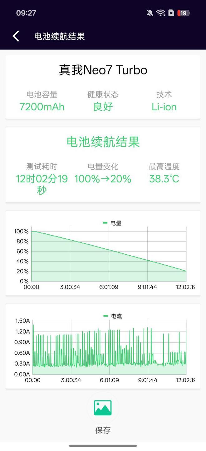 经过电池狗狗续航测试,真我Neo7 Turbo电量从100%消耗至20%用时12小时02分钟,折算下来满电续航大约在14小时左右,相比Neo7多出了近2个小时的续航时长,这不仅得益于更大的电池模块,还要归功于天玑9400e的更低的能耗表现。